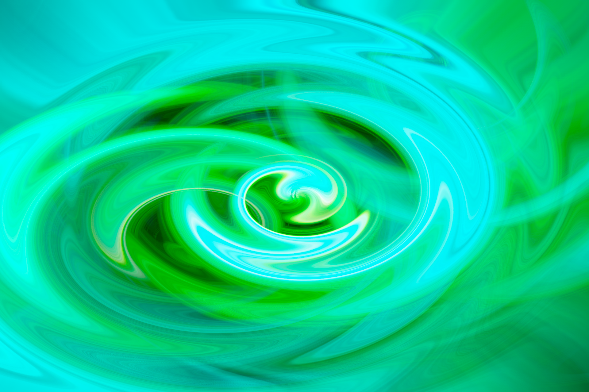 На картинке изображена абстрактная композиция, выполненная в зелено-голубых тонах. В центре рисунка находится завихрение, напоминающее спираль или водоворот, с плавными переходами между оттенками. Цвета варьируются от светло-зеленого до насыщенного бирюзового, создавая иллюзию движения и глубины. Общий эффект композиции вызывает ощущение динамики и энергии.