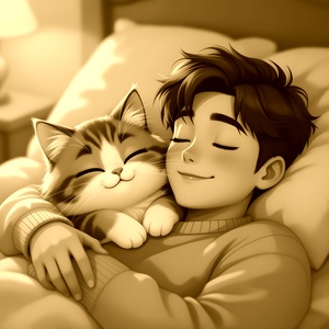 кот спит с хозяином