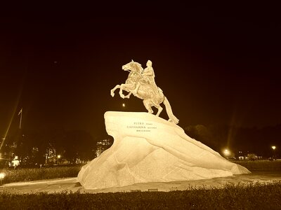 Медный всадник ночью, Фото